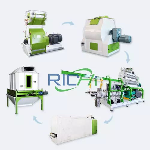 Aqua feed plant is suitable for the production of floating fish feed pellets, sinking fish feed pellets, shrimp feed pellets, crab feed pellets, etc.